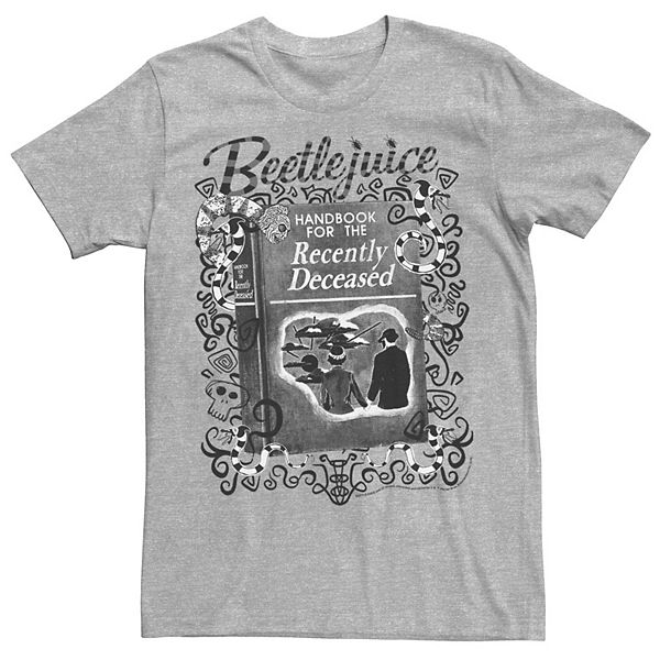 Beetlejuice Handbook For The Recently Deceased Shirt : Neitherworld waiting room beetlejuice wiki fandom.. This black beetlejuice tee features the cover for the handbook for the recently deceased printed on the front. We decided to use the book to hold the props we weren't using (as well as cell phones and wallets we didn't have pockets for!) step 5: To get the aged look, we boiled some tea bags and then rubbed the. It's a hardcover journal with antique looking pages. I painted/decoupaged/hand colored a hardcover book i had lying around and converted it into the handbook.